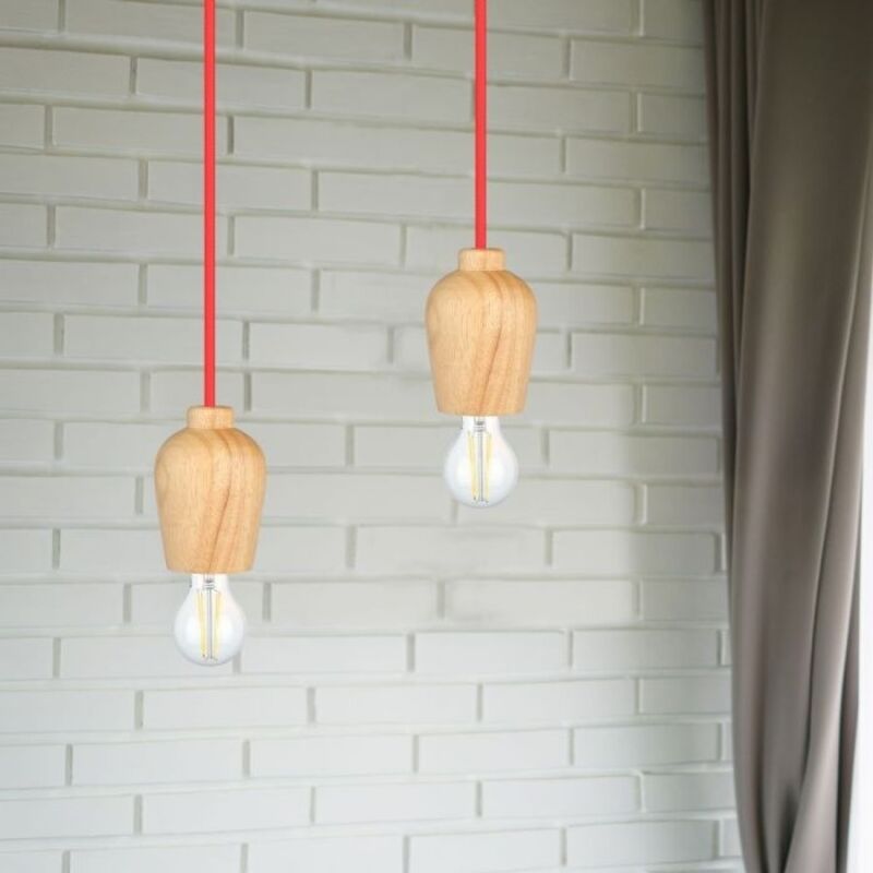 Lampadario LED in Legno con Portalampada E27 (Max 60W) con Cavo Rosso