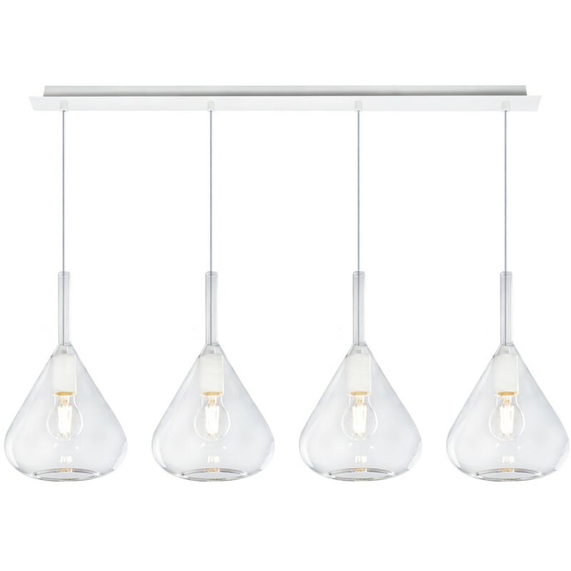 Il lampadario Kona 1177 S4 con quattro calatine è un elemento di design sobrio ed elegante che può essere utilizzato in molteplici contesti abitativi e commerciali. La base rifinita nel colore bianco, accompagnata dalle quattro calatine, dona al lampadario un aspetto moderno e minimale, senza perdere la sinuosità delle forme. Il diffusore in vetro trasparente, montato su un attacco e27, garantisce una luce uniforme e una distribuzione ottimale dell'illuminazione. Questo lampadario è ideale per illuminare ambienti di medie e grandi dimensioni, come soggiorni, sale da pranzo o uffici. Lampadario Top Light KONA 1177 BI S4 R TR Lampada soffitto, multiluce, vetri trasparenti, attacco E27 LED Vetri TRASPARENTI. Montatura in metallo BIANCO OPACO. L'articolo può essere personalizzato scegliendo tra i molti colori disponibili sia delle strutture (CR cromo, OS ottone satinato o BI bianco), sia dei vetri (AM ambra, TR trasparente, FU fumè, BL blu o VE verde), oppure cori misti come (TA