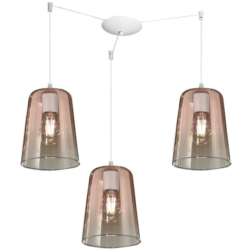 Sospensione tre luci di semplice design ma dall'effetto luminoso e colorato nella stanza. Un lampadario dalla doppia luminosità consigliato per penisole, tavoli da pranzo, scrivanie ... o da installare al centro di qualsiasi stanza. Illuminare e arredare con semplicità. Sospensione Top Light SHADED 1164BI S3 S RA Lampada soffitto con calate vetro pirex trasparente rame, E27 LED Diametro diffusore in vetro di 16 centimetri. La sospensione è provvista di tre portalampade E27 per lampadine a led escluse, da 18W. Le lampadine a led possono essere scelte di ben tre tonalità diverse a seconda dell'arredamento, di luce calda 2700-3000°K, di luce naturale 4000°K o di luce fredda 5000-6500°K. La temperatura di colore di 2700°K-3000°K indica una luce calda e accogliente, simile al tono delle vecchie lampadine incandescenti. Questa temperatura di colore genera un'atmosfera confortevole e romantica. La luce naturale con temperatura di colore di 4000°K è considerata una luce bianca a tonalità