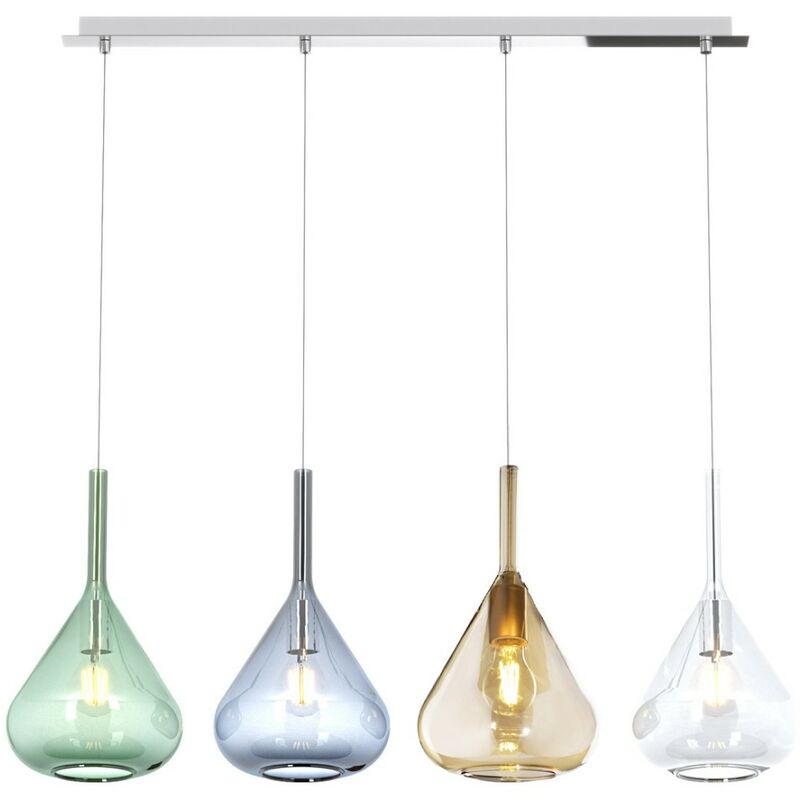 La lampada da soffitto KONA 1177 è rifinita da quattro vetri colorati che conferiscono alla sospensione un aspetto accattivante e possono creare una piacevole atmosfera nell'ambiente in cui viene installata. L'attacco delle lampadine è appositamente progettato per accogliere lampadine a led con attacco E27, che sono noti per essere più efficienti dal punto di vista energetico rispetto alle lampadine tradizionali. Questa sospensione, con la sua combinazione di materiali di alta qualità e colori vivaci, può diventare un elemento di design distintivo e moderno in qualsiasi spazio, sia esso domestico o commerciale. Lampadario Top Light KONA 1177 CR S4 R MC Lampada da soffitto con vetri colore verde, ambra, blu e trasparente Montatura in CROMO LUCIDO. Il lampadario è provvisto di 4 portalampade attacco grande E27. La sospensione misura un altezza min di 40cm e una max regolabile di 220cm. L'articolo può essere personalizzato scegliendo tra i molti colori disponibili sia delle strutture (CR