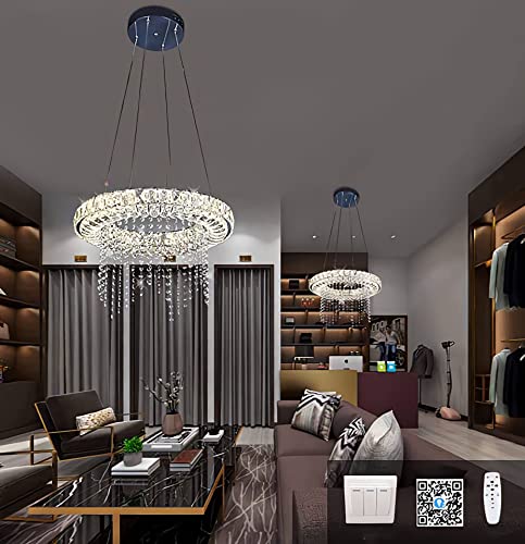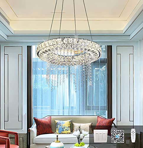 100W lampadario a Moderno cristallo goccia di pioggia LED design anelli elegante plafoniera dimmerabile con telecomando Lampada a Sospensione per ristorante tavolo da pranzo Soggiorno Camera da Letto