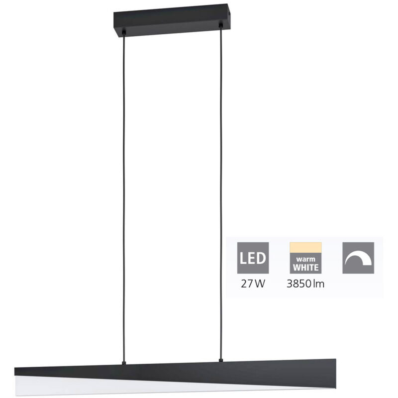 Collezione Isidro LA LAMPADA CON FORME DIAGONALI PER UN'ATMOSFERA MODERNA La plafoniera a LED ISIDRIO è composta da un profilo LED in metallo nero con un diffusore in acrilico satinato.. Le linee diagonali creano movimento ed enfatizzano il look moderno della lampada. I LED integrati emanano una luce bianca piacevolmente calda e sono dimmerabili alla parete tramite un apposito interruttore girevole a parete. Questo lampadario moderno si armonizza con ogni stile di arredamento e crea atmosfere sofisticate nel soggiorno o nella sala da pranzo.
