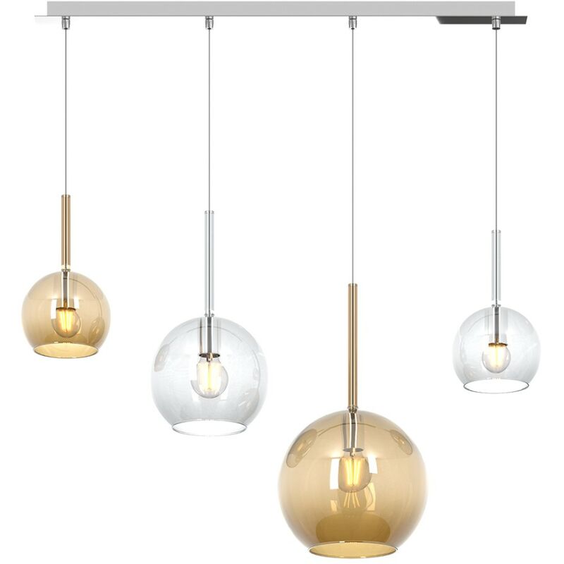 La lampada da soffitto, Future 1155 S4, è perfetta per creare un'atmosfera calda e accogliente nella casa. La base rettangolare in cromo lucido le conferisce un aspetto moderno e appariscente, mentre i vetri color ambra e trasparente diffondono una luce morbida e confortevole. La lampada Future 1155 S4 può ospitare fino a quattro lampadine a led con attacco E27, che ti permetteranno di abbassare i costi della bolletta elettrica grazie alla loro bassa emissione di calore e alla lunga durata. Grazie alla sua forma in altezze sfalsate, questa lampada da soffitto può essere collocata in modo ottimale sopra un tavolo da pranzo o in una zona salotto, illuminando l'ambiente in modo uniforme e creando un'atmosfera piacevole. Lampadario moderno Top Light FUTURE 1155 CR S4 RMIX TA Lampada moderna, sfere in vetro ambra e trasparente, E27 LED L'articolo FUTURE può essere personalizzato scegliendo tra i molti colori disponibili sia delle strutture (CR cromo, OS ottone satinato o BI bianco), sia