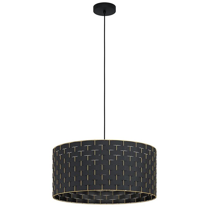 Collezione Marasales LA LAMPADA PER UN'AMBIENTE SEMPLICE E CONFORTEVOLE La lampada a sospensione MARASALEScomposta da un paralume rotondo in reticolato in ottone con fasce intrecciate di stoffa nera e pendente in metallo nero.. Grazie al suo design anni '60, questa plafoniera si abbina a interni dallo stile scandinavo, moderno o retrò ed offre un'atmosfera suggestiva alla tua sala da pranzo. La lampadina non è inclusa nella consegna. Per la lampada è adatta qualsiasi lampadina con attacco E27.