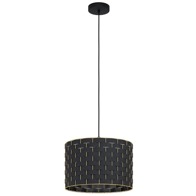 Collezione Marasales LA LAMPADA PER UN'AMBIENTE SEMPLICE E CONFORTEVOLE La lampada a sospensione MARASALES è composta da un pendente in metallo nero e un paralume rotondo in reticolato in ottone con fasce di stoffa nera intrecciate.. Grazie al suo design anni '60, questa plafoniera si abbina a interni dallo stile scandinavo, moderno o retrò ed offre un'atmosfera suggestiva alla tua sala da pranzo. La lampadina non è inclusa nella consegna. Per la lampada è adatta qualsiasi lampadina con attacco E27.