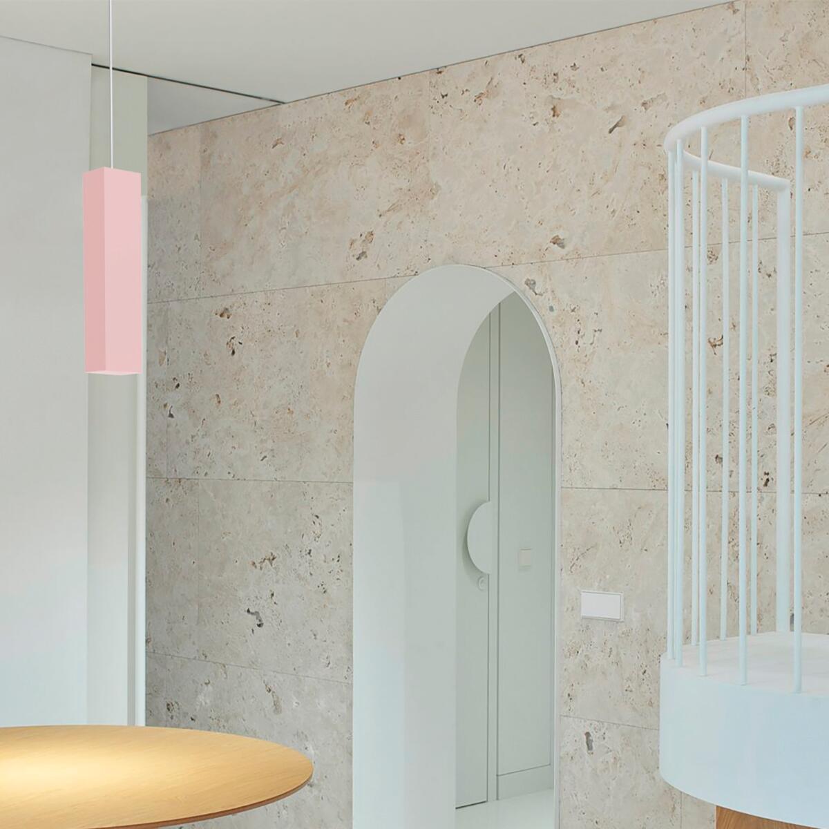 Sospensione in metallo caratterizzata da un design moderno che diffonde gradevolmente la luce. Verniciata in colore rosa. Adatta a qualsiasi ambientazione moderna/classica. Disponibile con diametro 6 centimetri e altezza 30 centimetri (1x GU10) o nella composizione a tre elementi (3x GU10).. Ideale come luce diffusa per una stanza di dimensione 15-20 mq. Consigliato per zona giorno e zona notte. Prodotto 100% Made in Italy. Disponibilità ricambi garantita per 7 anni. Riparabilità garantita al 100% in ottemperanza ai principi di economia circolare