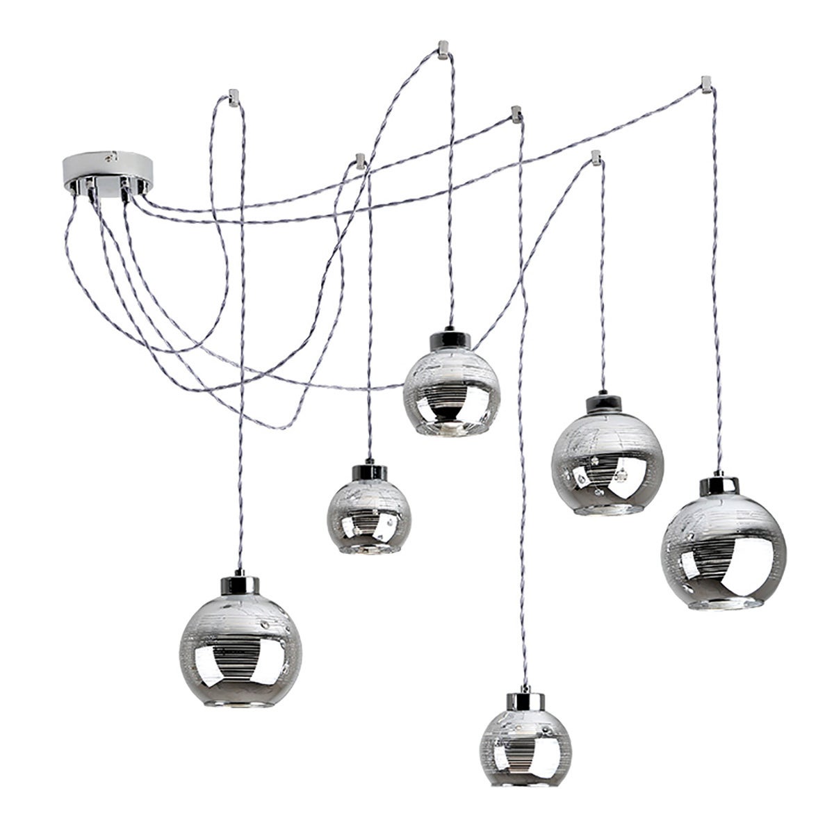 Con finiture raffinate, il lampadario Mirror è unico nel suo genere: il suo colore e la sua forma richiamano uno spirito fortemente moderno. Realizzato in metallo, questo lampadario a 6 punti luce cromato è ideato per essere neutro e di classe. Questo lampadario possiede un carattere decisamente moderno grazie alla finitura cromata. È al contempo sinonimo di originalità ed eleganza. Per far funzionare questo lampadario, è indispensabile l'utilizzo di 6 lampadine E14 da massimo 42W.