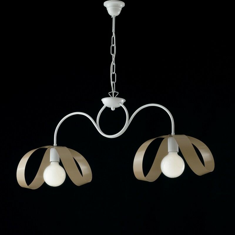 Lampadario moderno a sospensione in ferro Bianco Tortora due luci 82x h35 cm Specifiche Lampadario in ferro Laccato Bianco e Tortora Luci 2x E27 60W Attacco Grande LED, Risparmio energetico, o Alogene Lampade non incluse Prodotto artigianale MADE IN ITALY Dimensioni Diametro 82 cm Altezza 35 cm Altezza massima 95 cm.