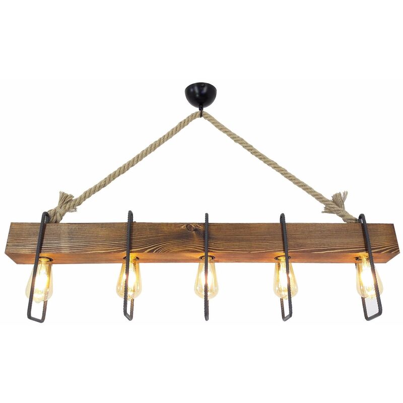 Lampada da soffitto 100% pino massiccio Dimensioni: 100 x 11 x 55 cm Realizzato a mano Tipo di filo: 5 x E 27 Max 40 W IP20 Colore: Noce Nero Beige