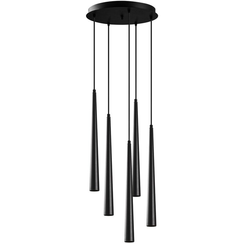 Lampada da soffitto Struttura in ferro Diametro: 43 cm Altezza: 135 cm Diametro paralume: 4 cm Altezza paralume: 45 cm Altezza regolabile Diametro della base: 40 cm Altezza base: 3 cm Lunghezza cavo: 90 cm Tipo di filo: 5 x 3 W Led 2700 K / 270 Lumen Istruzioni di montaggio e dispositivo di connessione inclusi Durata: 15.000 ore IP20 Colore: nero
