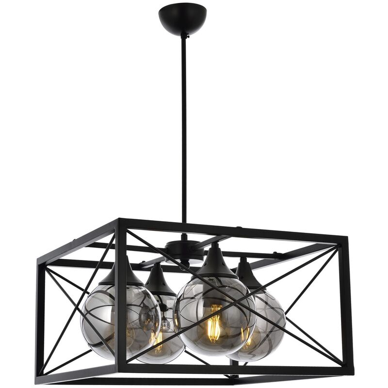 Lampada da soffitto Struttura in metallo Paralume in vetro Altezza: 80 cm Larghezza: 45 cm Profondità: 45 cm Tipo di filo: 4 x E 27 Max 60 W Colore: nero