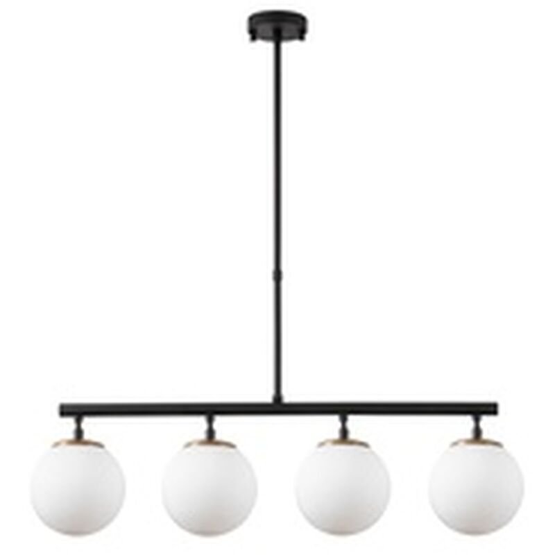 Lampada da soffitto Struttura in metallo Paralume in vetro Base in metallo Diametro paralume: 15 cm (4 pezzi) Dimensioni: 70 x 15 x 43-87 cm Altezza regolabile Diametro della base: 12 cm Altezza della base: 3 cm IP20 Tipo di filettatura: 4 x E14 Max 40 W Lampadina non inclusa Colore: nero