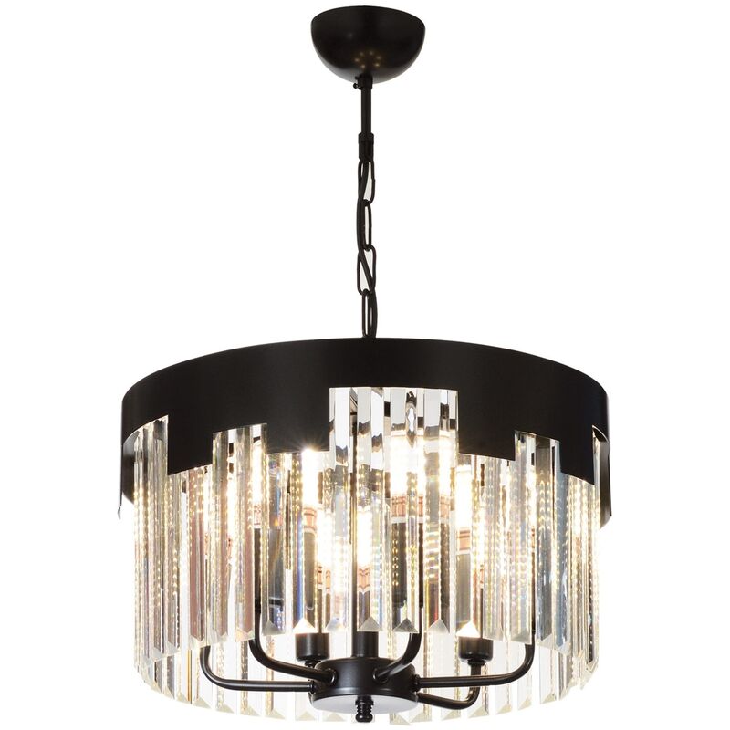 Lampada da soffitto Struttura in metallo Paralume in vetro Altezza: 60 cm Diametro: 40 cm Tipo di filo: 6 x E 14 Max 40 W Colore: nero