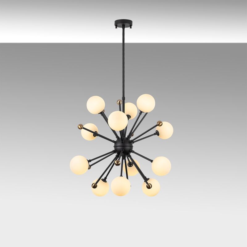 Lampada da soffitto Struttura in metallo Paralume in vetro Dimensioni: 60 x 60 x 68 cm Altezza massima: 102 cm Diametro paralume: 10 cm Altezza regolabile Lampadina non inclusa 220 - 240 V IP20 Tipo di filettatura: 12 x G9 Max 10 W Colore: nero