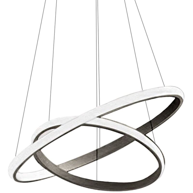 IOLE S2 TITANIO è una lampada a sospensione con montatura in alluminio satinato, diffusore in silicone bianco opale. IOLE è un segno grafico che lascia la sua firma distintiva nello scenario dell'illuminazione d'interni. Caratterizzata per le linee fluide e silhouette decise che sapranno catturare l'attenzione nell'ambiente Lampadario moderno Gea Luce IOLE S2 T 42W LED Sospensione ultramoderna, alluminio titanio, LED, 3000°K Categoria lampade a sospensione. IOLE S2 saprà stupire i vostri ospiti per l'elegante conformazione di ogni vostra combinazione che risulterà certamente esclusiva nella sua originalità questa è una sospensione molto versatile grazie ai suoi cavi regolabili in lunghezza tramite frizioni installate alla base a soffitto attraverso i quali è possibile non solo regolare l'altezza ma anche l'inclinazione degli anelli in base alle proprie esigenze, in modo da personalizzare la struttura in modo particolare ed originale. Lampadario a sospensione dalle forme geometriche