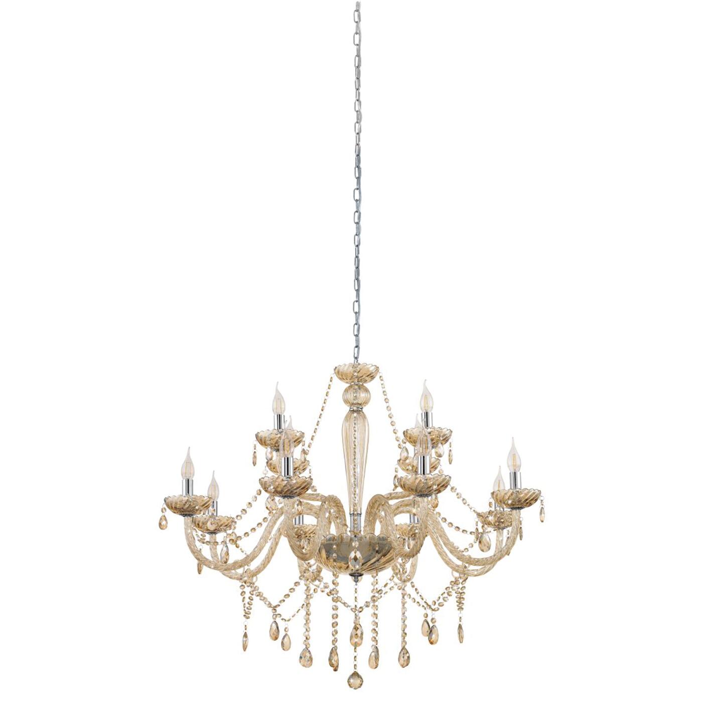 Dallo stile neoclassico sofisticato e raffinato, il lampadario a sospensione Basilano saprà senza dubbio creare un'atmosfera gradevole e accogliente nei tuoi spazi. Discreto e minimalista, sono i toni ambrati che sublimano le linee neoclassiche di questo lampadario a 12 punti di luce in metallo. I colori e l'aspetto cromato definiscono lo stile neoclassico di questo prodotto. È ideale per arredare gli interni conferendo un fascino unico grazie alle sue linee neoclassiche. Per utilizzare questo prodotto, è essenziale acquistare 12 lampadine E14 (non inserite nella confezione) da massimo 40W.