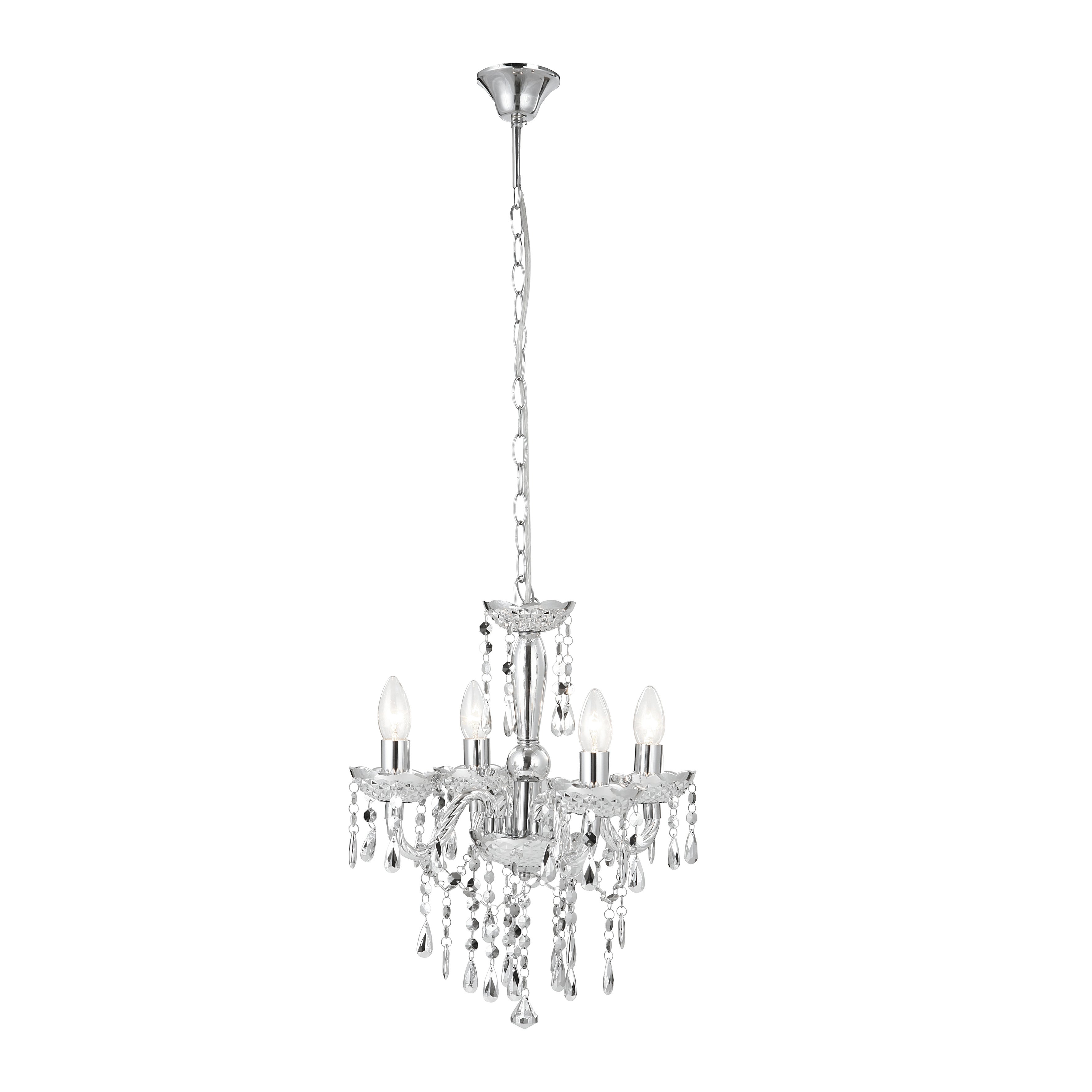 Con un design sofisticato, raffinato e neoclassico, il lampadario Cuimbra crea un'atmosfera piacevole. Fine e raffinato, sono i toni cromati che valorizzano le linee neoclassiche di questo lampadario a 4 luci in materiale acrilico. L'effetto cromato di questo modello è concepito per esaltarne lo stile. Questo lampadario saprà donare ai tuoi ambienti un fascino retrò chic e raffinato, veramente ineguagliabile. Suggeriamo l'acquisto di 4 lampadine (non fornite) E14 con potenza massima di 40W.
