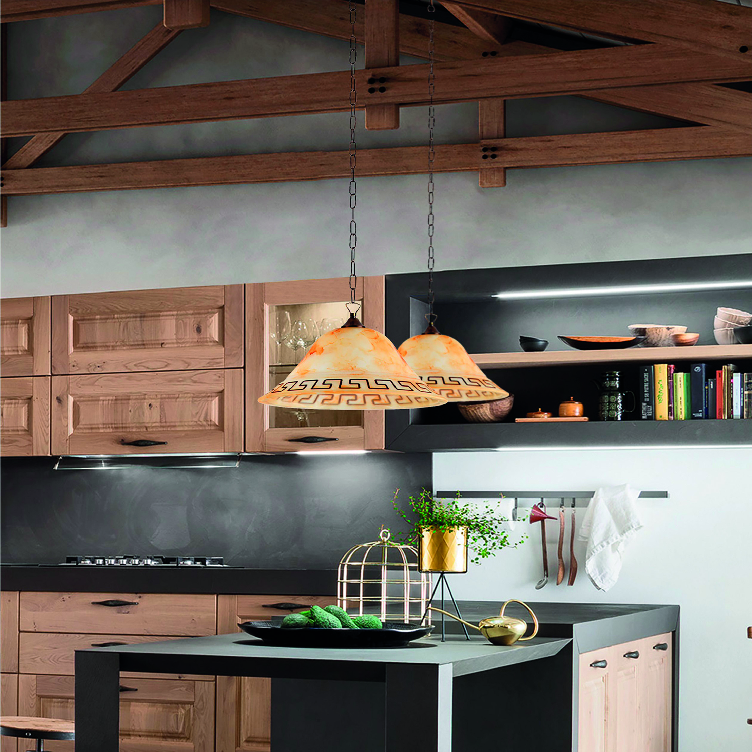 Con uno stile ricercato dal gusto rustico, il lampadario Creta è ideato per accostarsi armoniosamente con diversi universi decorativi. Interessante e gradevole, questo modello in vetro color ambrato si abbina a meraviglia con gli arredamenti rustici. Il finish satinato e i colori fanno di questo modello un complemento d'arredo dal carattere unico nel suo genere. Scegli lo stile rustico per dare un tocco caldo ed accogliente a tutti i tuoi spazi. Nella confezione non è inclusa la lampadina. Questo lampadario è compatibile con lampadine con attacco E27 e potenza massima di 42W.