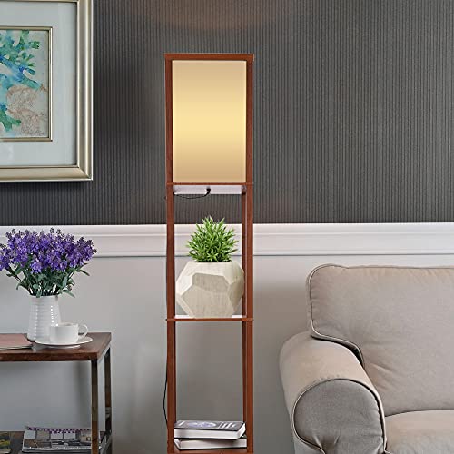 Lampadario con scaffale a 3 strati, lampada moderna su piede, in legno di quercia, perfetto per camera, ufficio, soggiorno, 160 x 26 x 26 cm marrone