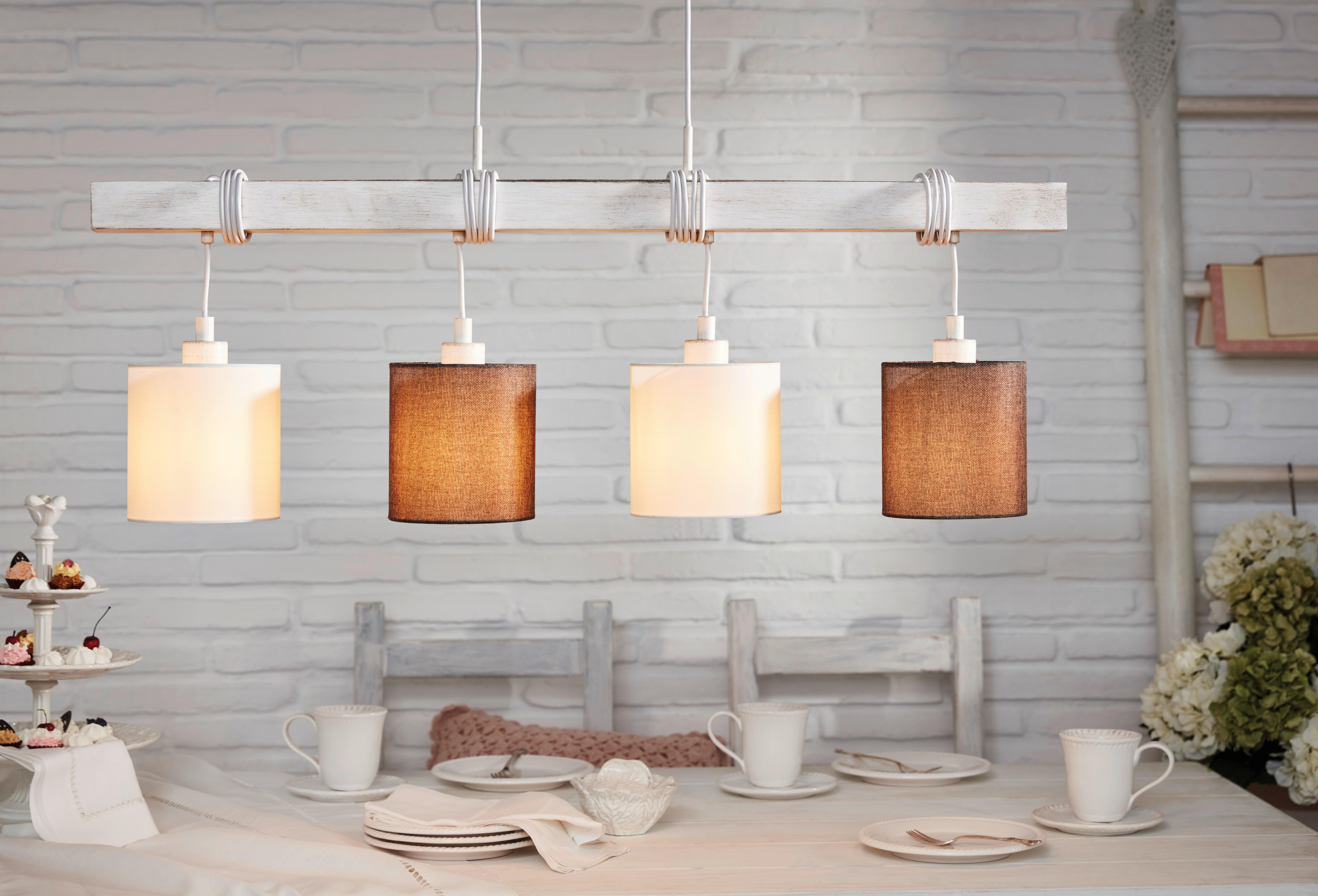 Il lampadario a sospensione Townshend 2 in stile shabby chic è un modello di semplicità e di autenticità che saprà apportare un tocco delicato ai tuoi interni. L'acciaio inossidabile e le tonalità marrone, bianco e grigio predominanti fanno di questo modello a 4 luci un complemento d'arredo neutro e raffinato. Lo stile shabby chic di questo lampadario è messo in risalto dalle sue tonalità e dalla finitura patinata. Un delizioso look shabby chic che si sposerà perfettamente con interni calorosi e accoglienti. Per far funzionare questo modello, è indispensabile l'acquisto di 4 lampadine E27 da massimo 60W.. Illumina l'atmosfera in casa tua con questo lampadario facilmente regolabile in altezza.