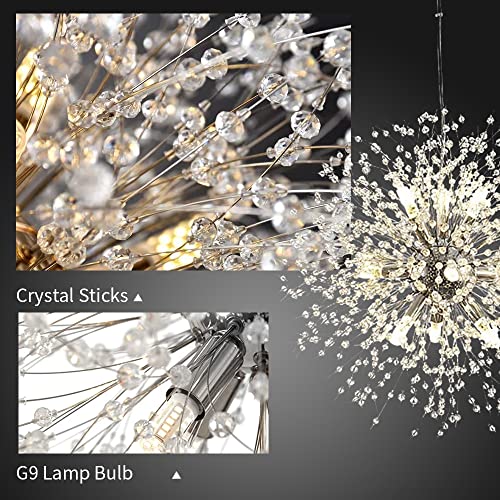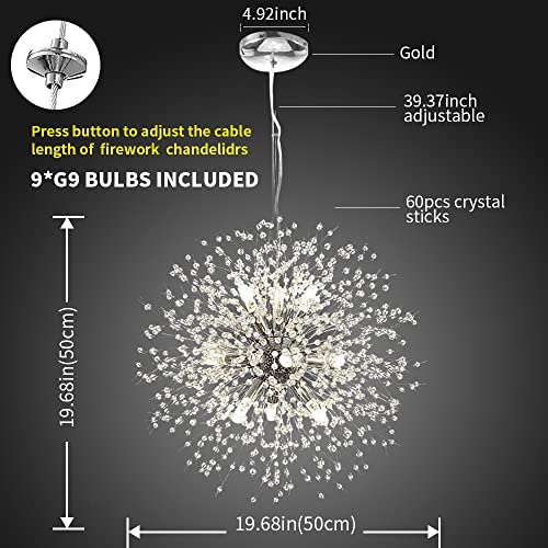 Lampadario,9 luci LED soffione forma di fuoco d'artificio Lampadario moderno con cristalli cadenti luci da soffitto apparecchio di illuminazione penzolante(2 pz vetri+ 9 luci tipo g9 in regalo)