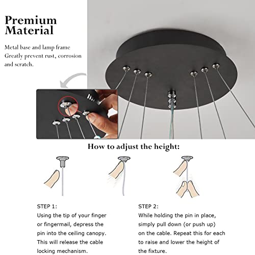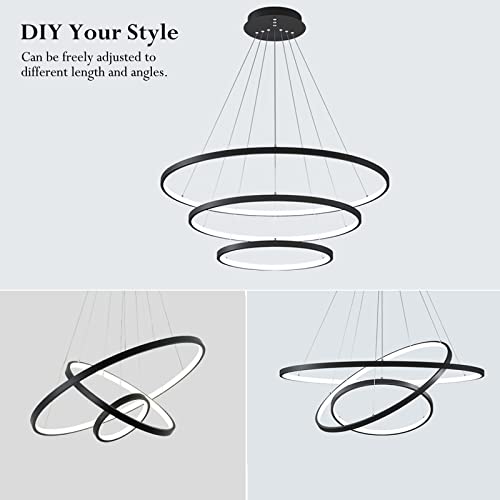 【Lunghezza regolabile e fai da te il tuo stile】 Tre diverse dimensioni di anelli luminosi, collegati da cavi regolabili, possono essere regolati liberamente in diverse posizioni e angoli, nonché in altezza a piacimento o preferenza. Abbina facilmente il tuo stile di casa.