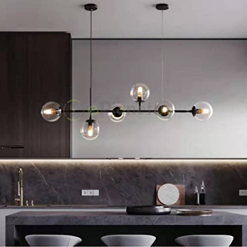 Lampadario a sospensione bolle 6 sfere attacco E27 trasparenti in vetro lampada da soffitto in metallo oro argento design moderno (Nero)