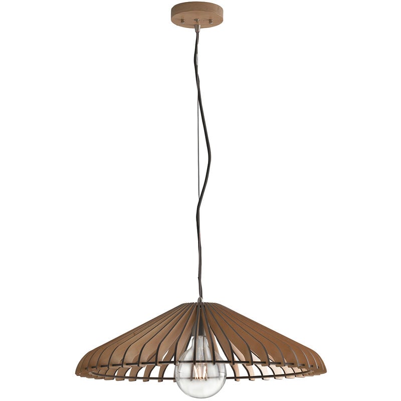 Sospensione realizzata dalle linee in legno naturale o legno nero con cavo in tessuto nero. Colore: Legno Materiale: Legno e tessuto Tipo sorgente o lampadina richiesta: E27 Grado di protezione da corpi solidi e acqua: IP20 (solo uso interno) Dimensioni: 120x50x13.5 cm. Il brand Luce Ambiente e Design pone l'accento su tendenze, design italiano e qualità dei materiali. Tutto ciò che serve per illuminare e allo stesso tempo arredare i tuoi ambienti domestici. Vasta selezione di illuminazione da soffitto, parete o superifice. Lasciati affascinare dalle linee sinuose, accostamenti audaci e un tocco di tecnologia che non guasta mai. La Gruppo FT si impegna nella ricerca dei migliori prodotti da offrire ai propri clienti, focalizzandosi su velocità e servizio post-vendita.
