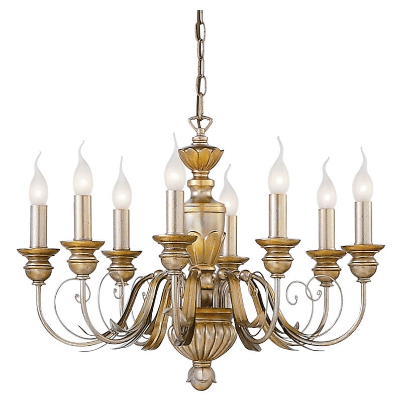 Collezione Firenze EMOZIONI CLASSICHE Lampadario a 8 luci con corpo luce in resina. Bracci e foglie in metallo modellato artigianalmente. Decorato a mano con foglia d'oro e antichizzato.