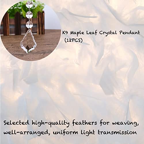 【PENDENTI IN CRISTALLO K9】 - Ci sono PENDENTI IN CRISTALLO a forma di foglia d'acero K9 appesi al centro del paralume di piume. Il colore trasparente, la riflettività e la rifrazione sono molto buone, riflettendo la luce intensa.