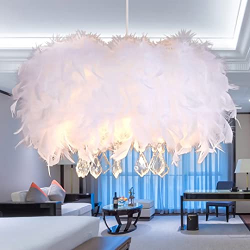 Lampadario a sospensione in cristallo con piuma Lampada a sospensione in piuma bianca Lampada da soffitto a soffitto, Romantico e di lusso per soggiorno, sala da pranzo, 15,9 ''