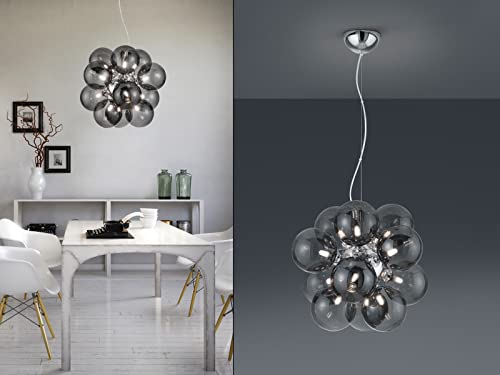 Lampadario a sospensione a LED con design multi-luce, in cromo lucido, con paralume in vetro fumé, incluse lampadine a LED G9