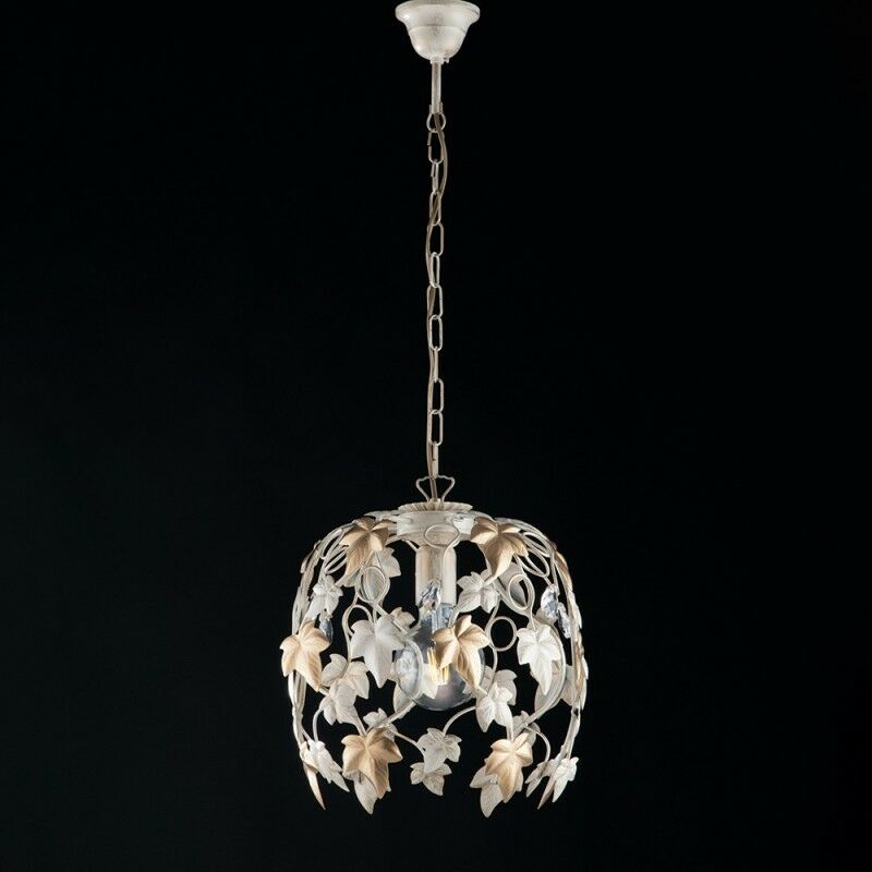 Lampadario a sospensione in ferro Avorio Oro Chiaro e strass una luce 30x h37 cm Specifiche Lampadario in ferro Laccato Avorio, con decorazioni OroChiaro e strass in cristallo Una luce Luci 1x E27 MAX 60W Attacco grande LED, risparmio energetico o Alogene Lampade non incluse Prodotto artigianale MADE IN INTALY Dimensioni Diametro 30 cm Altezza 37 cm Altezza massima 97 cm.