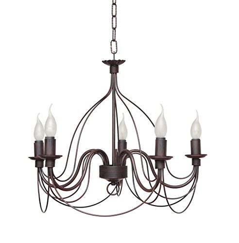 Lampadario a sospensione Ferro battuto classico 5 luci rustico shabby chic vintage Made in Italy Lisette SP5 Nero-Ruggine