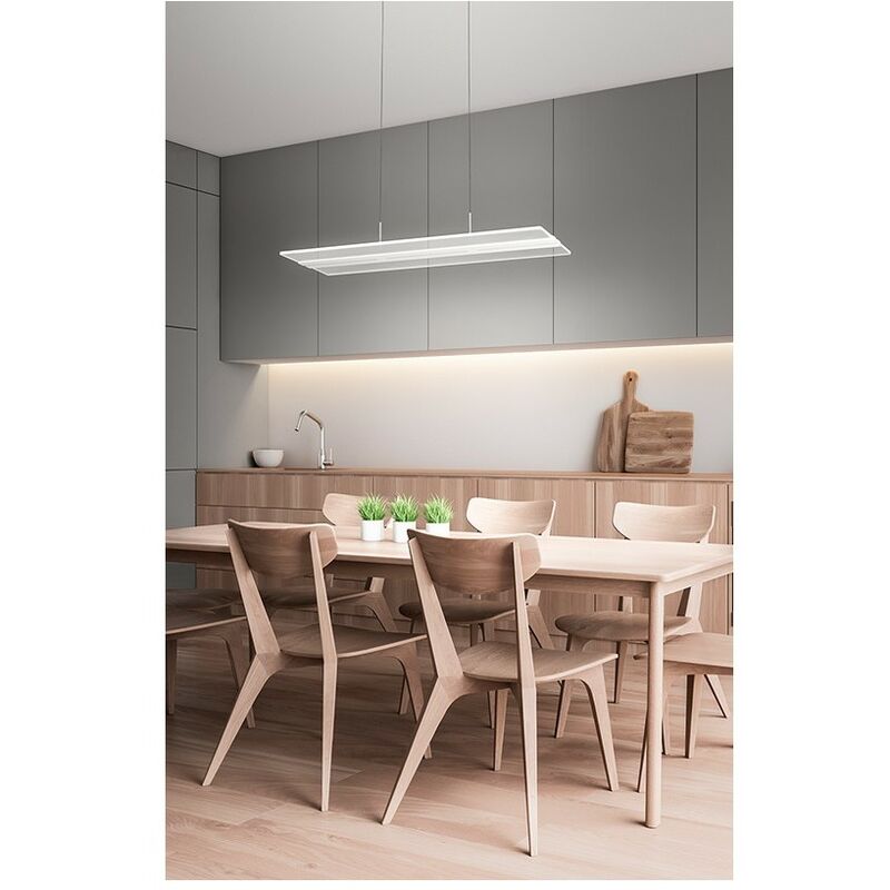 Lampadario a led a sospensione Ghost realizzato in alluminio colore bianco e diffusore in acrilico trasparente con microincisioni a laser. Lampadario a led a sospensione H150cm. Lampadario a led a sospensione da 32W, 2560lm e una sola temperatura di colore: 3000K- CCT 300K, 4000K, 6000K. Lampadario a led a sospensione con il fascio di luce direzionato verso il basso in modo tale da illuminare con efficienza l'ambiente sottostante. Lampadario a sospensione a led molto particolare e ricercato. Sospensione elegante ideale per ambienti moderni, per salotti, cucine, studi o uffici. Sospensione a led molto utilizzata in studi professionali di geometri, avvocati, architetti o di assicurazioni. Sospensione a led prodotta da Perenz. Codice prodotto: 6865 B CT TIPO DI INNESTO: dimmerabile ALIMENTAZIONE: 230V POTENZA: 32Watt COLORE LUCE: 3000K FLUSSO LUMINOSO: 2560Lumen DIMENSIONE: H150cm