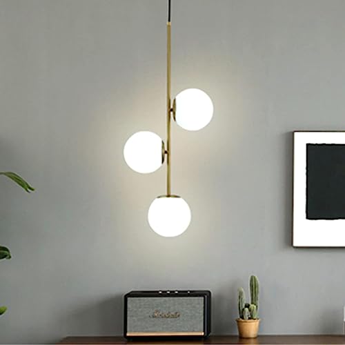 Lampadario a sospensione lineare a forma di globo a 3 luci della metà del secolo, isola della cucina, vetro bianco al latte, lampadario lineare a soffitto per fattoria, 2 luci lunghe dorate