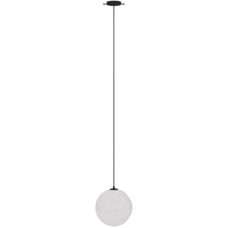 Collezione Luna LA LUNA A CASA TUA Lampadario a Sospensione Moderno Luna corpo in Alluminio Nero Bianco luci Led Integrato 5W IP20 4000K 350Lm H.20 x H.220 cm. Corpo in metallo. Plafoniera sferica in acrilico bianco opaco. Ampio angolo di diffusione di 360°. Tipi di fissaggio - sovrapposto e sotto stucco. Sorgente luminosa LED.