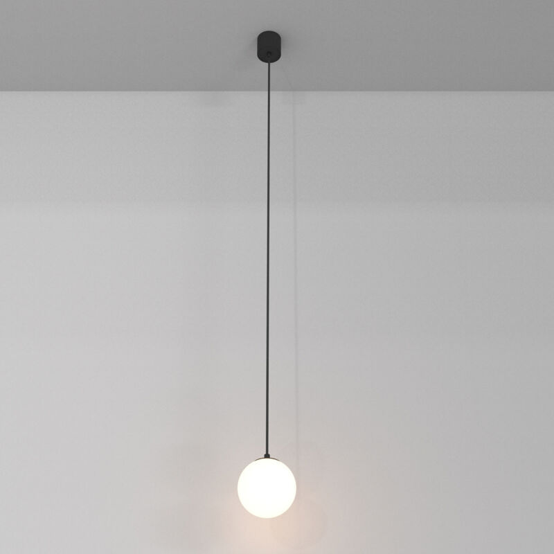 Collezione Luna LA LUNA A CASA TUA Lampadario a Sospensione Moderno Luna corpo in Alluminio Nero Bianco luci Led Integrato 5W IP20 3000K 300Lm D.10 x H.220 cm. Corpo in metallo. Plafoniera sferica in acrilico bianco opaco. Ampio angolo di diffusione di 360°. Tipi di fissaggio - sovrapposto e sotto stucco. Sorgente luminosa LED.