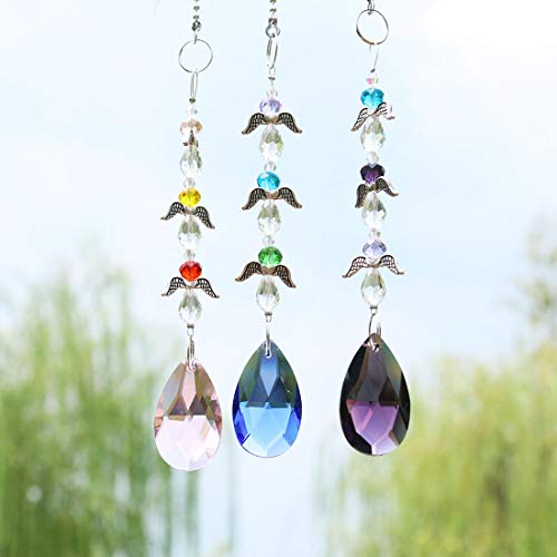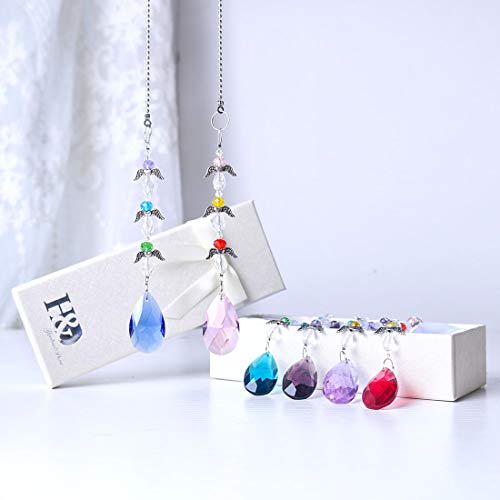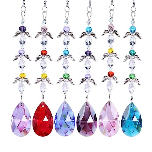 H&D Lampadario a sospensione con pietre di cristallo a forma di prisma, effetto arcobaleno, acchiappasole con perline per decorazione, con ali dell'angelo, 6 colori per ogni pezzo
