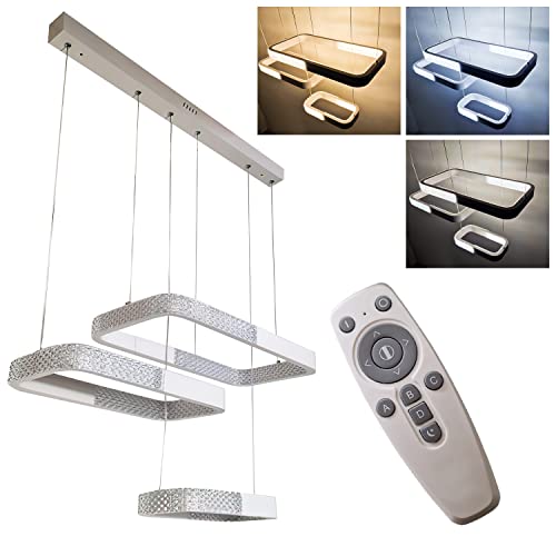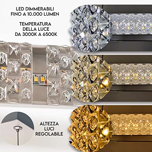 Lampadario a Sospensione Led Soffitto Moderno Vetro Effetto Cristallo e Alluminio Luce Dimmerabile Fino 8500 Lumen da 3000K a 6500K con Telecomando Altezza 100cm Diamanti Camera Letto (68W 3 Cerchi)