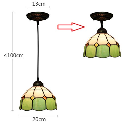 Lampadario a sospensione stile Tiffany realizzato a mano, classico, lampada mediterranea, in vetro, per corridoi Balconi, cucina, camera, ingresso E27, diametro 20 cm