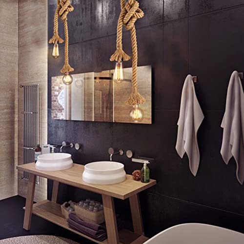 Lampadario a sospesione portalampada attacco E27 con corda di canapa design country rustico