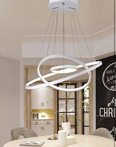 Lampadario sospeso led 48w cerchi pendente con anelli bianco stile moderno per camera salotto (Luce naturale)
