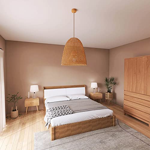 Lampadario Stile Marino con Paralume in Rattan, Giunco, Bambu, Vimini | Lampada a Sospensione per Cucina, Soggiorno, Casa al Mare (h 50 x Ø 50 cm)