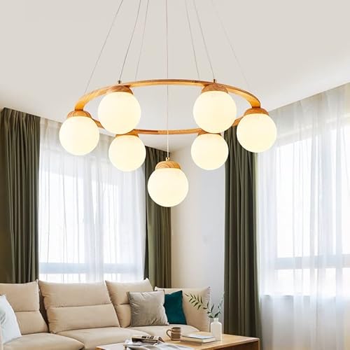 Lampadario Teste a più teste a LED lampadario for la camera da pranzo da pranzo camera da letto studiare in vetro rotondo a sospensione lampada da lampada in legno in legno corro