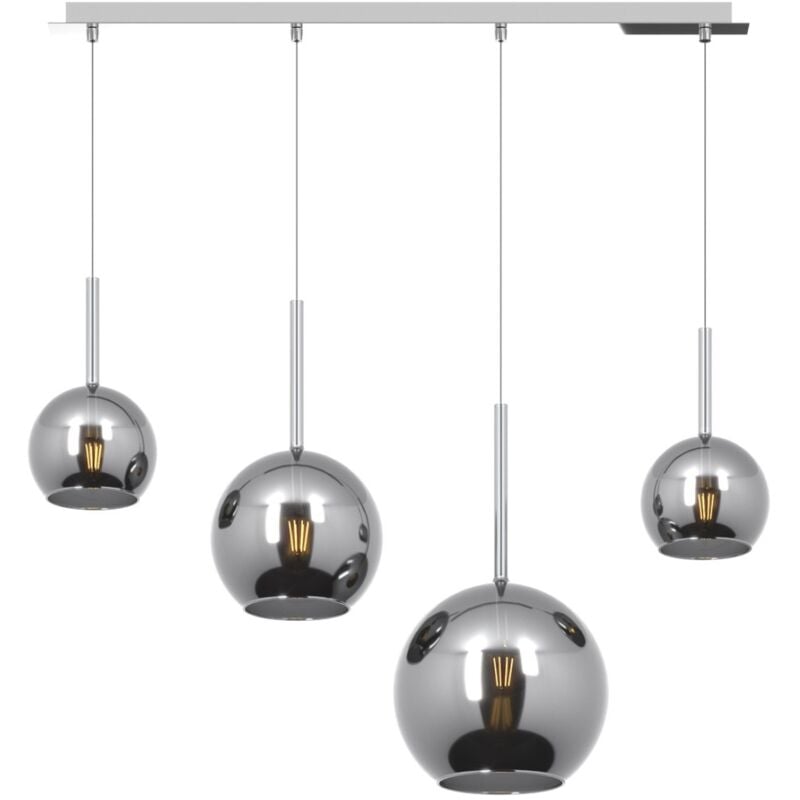 Il lampadario Future 1155 S4 RMIX CR è rifinito da diffusori in vetro cromato che creano un gioco cromatico e di effetto in tutta la stanza. Le altezze delle sfere sono sfalsate per dare un effetto dinamico all'illuminazione. L'attacco delle lampade è E27 a led garantiscono un'illuminazione energetica ed ecologica. Un corpo illuminante creato per illuminare ambienti da vario genere, ad uso commerciale o privato e per donare alla stanza colore e un'illuminazione senza limiti. Lampadario moderno Top Light FUTURE 1155 CR S4 RMIX CR Lampada moderna, sfere in vetro cromo lucido, E27 LED L'articolo FUTURE può essere personalizzato scegliendo tra i molti colori disponibili sia delle strutture (CR cromo, OS ottone satinato o BI bianco), sia dei vetri (TR trasparente, AM ambra, CR cromo, OR oro o RA rame) oppure vetri misti come TA trasparente e ambra, TC trasparente e cromo o MC multicolor, immagini corrispondenti per i colori disponibili. Diffusori in CROMO LUCIDO. Montatura in CROMO LUCIDO.
