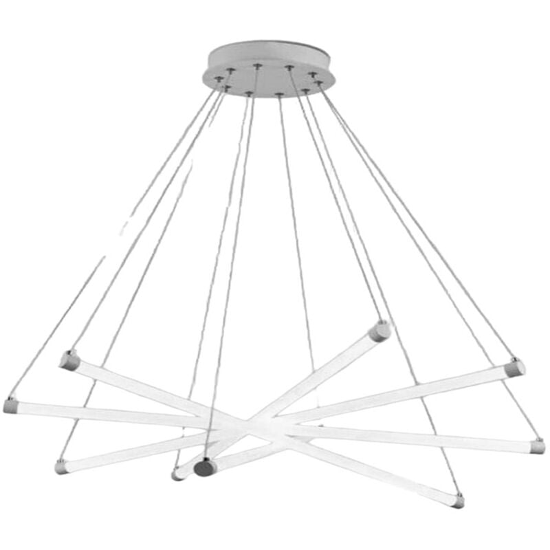Lampadario a sospensione caratterizzate da design estremamente moderno, capace di adattarsi perfettamente ad ogni ambiente per valorizzare tutti i minimi dettagli. Con forma geometriche e contemporanee che dona un tocco brioso ed originale ad ogni stanza: dalla cucina alla camera da letto fino alla sala da pranzo. Dotata di 5 tubolari con led integrati Potenza: 55 watt Flusso luminoso: 4400 lm Angolo di illuminazione: 360° Indice di resa: Cri Ra > 80 Gradi kelvin: 4000k Tensione d'ingresso: AC 220-240v 50/60Hz Materiale: Metallo e Alluminio Colore: Bianco Dimensioni: ø820 x H 1100 mm Peso: 1.9 Kg