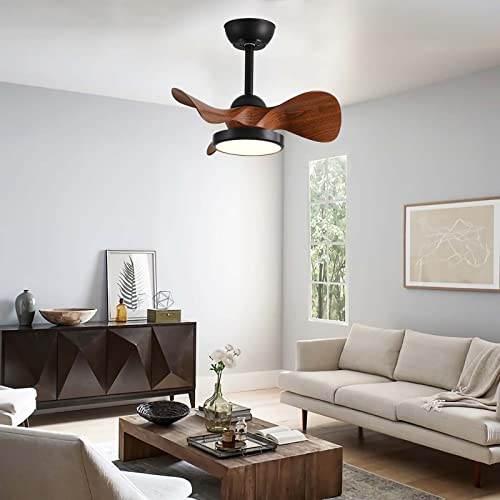Lampadario Con Ventilatore Da Soffitto LED Silenzioso Dimmerabile Plafoniera Con Ventilatore E Telecomando Reversibile 6 Velocità Ventola Lampadario DC Per Camera Da Letto Cucina-Black wood grain||B
