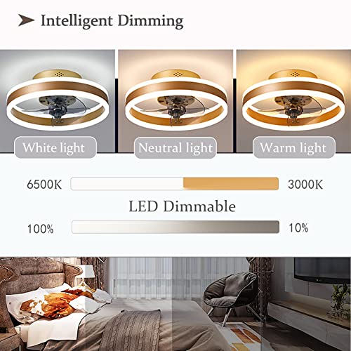 Lampadario Con Ventilatore Da Soffitto Silenzioso Rotondo Moderno LED Dimmable Plafoniera Con Ventilatore Reversibile 6 Velocità Timer Ventola Lampadario Per La Camera Da Letto Lounge-White||50CM