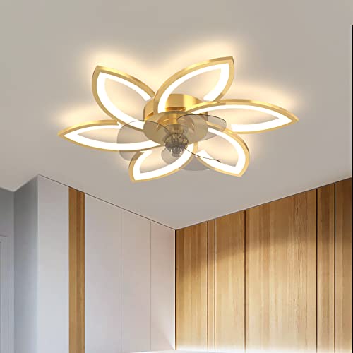 78 cm Lampadario Ventilatore da Soffitto Con Telecomando Led Dimmerabile Pale da Soffitto Design DC Plafoniera Fiore Led Reversibile 6 Velocità Lampadari a Ventola per Camera da Letto Cucina,Oro